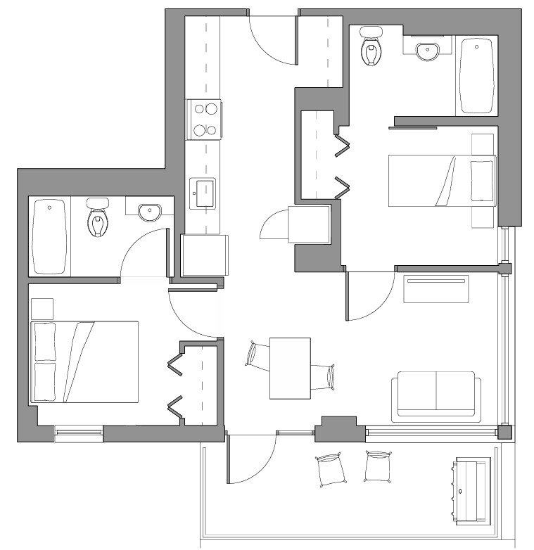 Type E3 - Premium Plus 658 SqFt From: $2250 2 Beds 2 Bath Balcony Enlarge image 658 SqFt From: $2250 2 Beds 2 Bath Balcony