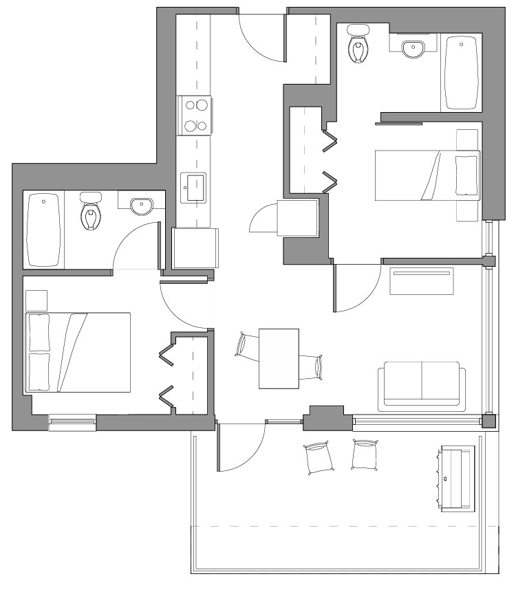 Type E2 - Premium Plus 658 SqFt From: $2225 2 Beds 2 Bath Balcony Enlarge image 658 SqFt From: $2225 2 Beds 2 Bath Balcony